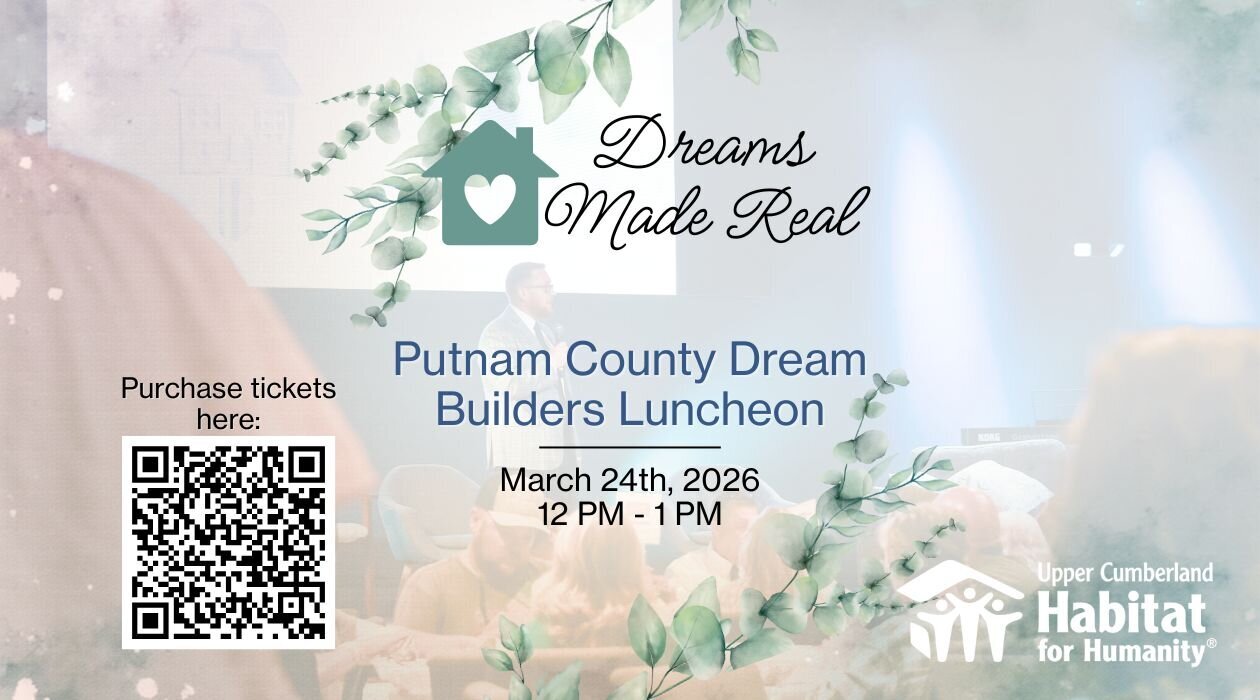 Join us on March 24th from 12-1 PM at Cookeville Life Church (2223 N Washington Ave, Cookeville, TN 38501) for an inspiring afternoon dedicated to transforming lives through Upper Cumberland Habitat for Humanity. There will be a social time before the event from 11:30-12:00. Enjoy a delicious lunch while hearing powerful stories on dreams turning into reality. As we celebrate our theme, Dreams Made Real, you’ll experience heartfelt testimonies from homeowners. A business donor and committed volunteer will also speak on the impact of their contributions and why they choose to invest in the mission of Upper Cumberland Habitat for Humanity. Their perspectives reveal how every partnership helps transform a dream into a stable, thriving future. This event is more than just a luncheon; it's an opportunity to discover the mission, witness the impact, and become part of real change in our community. Your investment, whether through attendance, donations, or sponsorship—helps build homes, change lives, and create a future filled with hope. Tickets are just $25, or become a table host for $400 and you'll also enjoy meaningful connections, and a deeper understanding of how we can work together to make a difference. Donations are always welcomed, and every contribution moves us one step closer to building brighter futures. Sponsorship opportunities are also available! Please reach out to Kasey at kasey@uchabitat.org. We can't wait to see you there, because when we build together, we build stronger! |